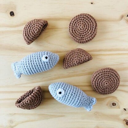 Hands-on bible activity for your kiddos! Teach your kids about how Yeshua (Jesus) multiplied 5 loaves and 2 fish with this hands-on crochet versions for your kids! Most likely the loaves were more of a flat bread than a loaf of bread we think of today which is why my pattern is the way that it is.