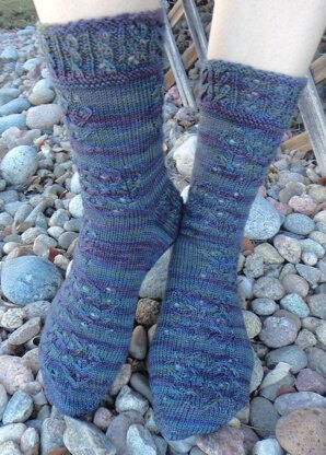 The socks are mirrored so that our sock galaxies (and cuffs and heels) spin in both directions. I’ve also provided 2 charts for each sock direction: one with cables & lace and one with cables & texture, so you can make these socks for almost anyone.