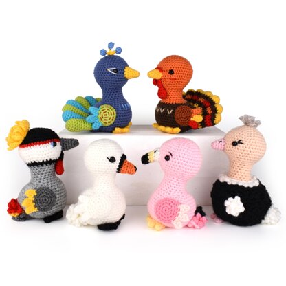 In this pattern you will find a cute collection of some of our planet's most iconic birds. Contains instructions to make yourself a fabulous flock of six longnecked Feathered Friends - including a peacock, turkey, crowned crane, swan, flamingo and ostrich.