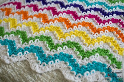 The Loop the Loop Chevron Afghan crochet pattern is a fun new textured design that will brighten your day. This is a great pattern to use up your stash of yarn! It looks wonderful in just a few colors or many.