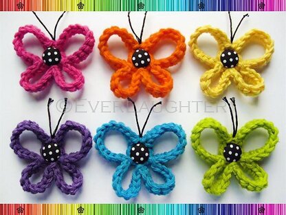 The butterfly measures approx. 2 ½ inches across and 2 inches tall but can vary based on yarn and hook size.