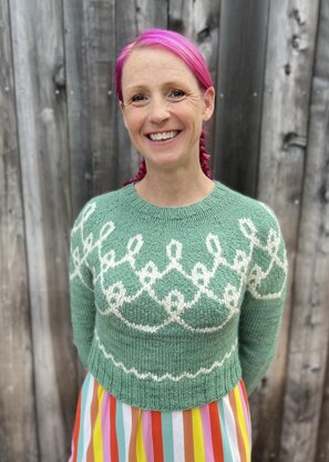 This fun crop pullover is designed to be worn with your favorite dresses so you can keep wearing them throughout the fall. The pattern is the doodle of someone lost in thought, dreaming about lazy afternoons at the beach. This is a true crop. Only four inches separate the sleeve divide from the bottom waves, perfect for showing off your best flowy skirts.
