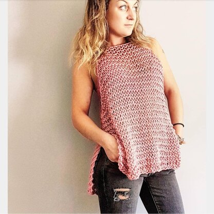 Easy to follow knitting pattern for any knitter, from beginner to expert. Knowledge of the knit and purl stitch is all that is required. This pattern will give you 4 yarn options but you can use many other brands for this top. Make it in one afternoon! This casual cotton tank top is light and airy and perfect for hot summer days. Wear it as a bikini cover-up or just as a top with your favourite jeans. It is a loose-knit, slouchy top so wear your favourite pretty bralette, bikini top or bando under it. Wear it on the beach or out on the town, this top will give you that versatility! One size (it is very stretchy) Front length: approx. 24 ins. (61 cm) when on hanger Back length: approx. 25 ins. (63.5 cm) when on hanger Width at hips: approx. 20 ins. (51 cm) when laid flat It is hard to give accurate measurements due to the stretchiness of the item. This pattern is in English only.