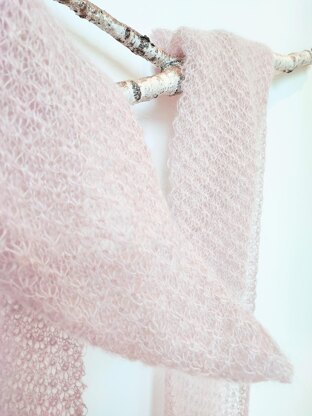 This fall, 2023, it seems fashionable to wear a very long and oversized scarf. Luckily I was just planning to knit a scarf, so decided to have go for a long but still light and fluffy one. Kidsilk Haze is a blend of mohair and silk yarn, and suited well for my planned design. So here it is, my take on a long and lovely warm scarf that is needed everywhere where cold is creeping in.