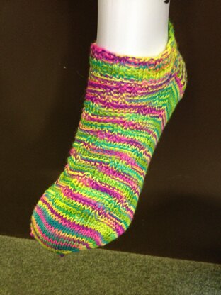 This is a knitting pattern for an short sock. It is knitted in the round with 4 ply sock yarn. The length of the foot can be altered to fit.