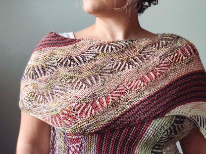 Explore color with stripes and chevrons! Loro is a lightweight, drapey rectangular wrap knit on the bias, transitioning from garter stitch stripes to dimensional two-color brioche chevrons. I love garter stitch and brioche together in one accessory: they create almost the same amount of squish! This shawl pattern is named after my favorite Pinback song, Loro. It is a magical, flowing melody, full of waves of notes, rhythms, and vocals.