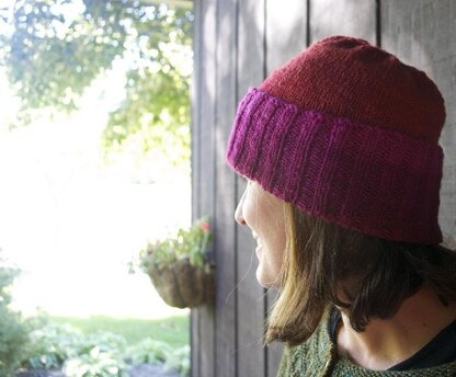 The original was a beautiful, simple hat I knit out of a hank of worsted weight handspun yarn from Fiber Optics Gradient Roving. My sweet daughter wore the hat to school one day and then I never saw it again. The hat is lost forever, thus the name the Lost Banner Hat.