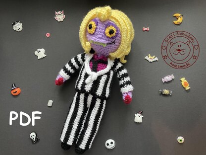 With yarn length 150m/50g this doll is about 30 cm high.