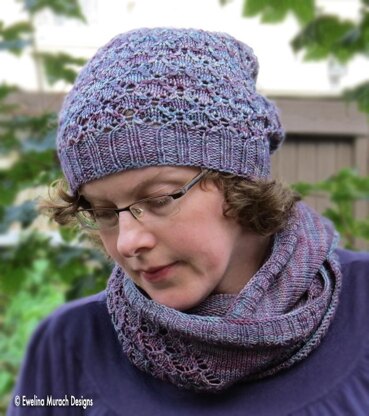 Lotus Hat is made in soft worsted weight merino wool using a simple lace pattern.