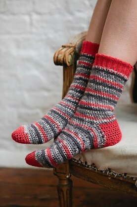 Crochet yourself some comfy socks to kick back and relax in after a long day. Bliss!