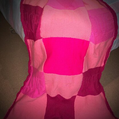 Our 15 panel blanket is shown with words knitted into the pattern using a simple knit and purl stitch. No bubble stitches !! Making this not only quicker but within the scope of a beginner who can knit and purl. A grid is also provided for those that also like to follow the design as it takes shape.