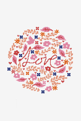 Incredibly soft and breezy, this free cross stitch pattern gathers a myriad of various flowers, hearts and leaves together. The lilac dove represents the love and the lettering in the center highlights the message!