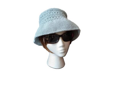 The Love Me A Bucket Hat is soft and lightweight. The brim holds its shape nicely, providing a good amount of sun coverage. It is worked in the round with a G (7) 4.5mm hook. A breathable 100% cotton was used and mesh rounds were added for air flow. It is easy to pack, making it ideal to take on vacation. Color yarn used is called Cool Grey, but it looks like a light Ice Blue. The pattern includes 3 sizes: S, M, L, as well as a schematic and photos.