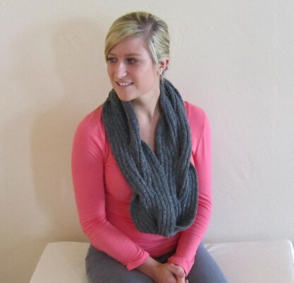 This super soft cowl is completely reversible. It's worked in 2x2 ribbing and uses large cables to create a loosely braided look.