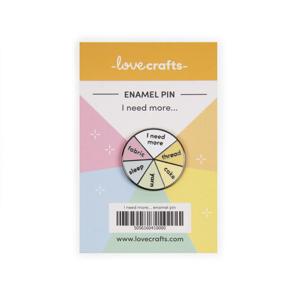 I Need More... Yarn, thread, fabric... need we go on? Because a stash is never really full, is it? This pin measures 25mm x 25mm and features a beautiful gun metal finish that is sure to stand out. Each pin has a rubber backing. Why? You might be asking... This softer alternative to metal means the backing is less likely to scratch, catch and tear. And if you're planning on popping it on your project bag, we wouldn't want that happening to your projects!