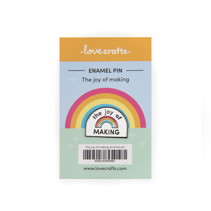 Let everyone know you're a proud maker with our brand new pin collection. Adorn your totes, project bags, jackets and more with the perfect crafty accessory.\nThe Joy of Making:\nAh, the LoveCrafts motto. We believe everyone should feel the joy of making because a world without making is a world without joy! This technicolor treat measures 25mm x 18mm and features a beautiful gun metal finish that is sure to stand out. \nEach pin has a rubber backing. Why? You might be asking... This softer alternative to metal means the backing is less likely to scratch, catch and tear. And if you're planning on popping it on your project bag, we wouldn't want that happening to your projects!