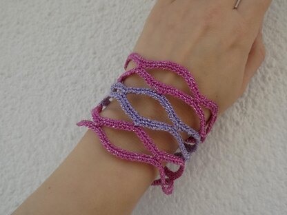 This striped colorful lozenge net crochet bracelet keeps its form perfectly. This pattern is for a 22 cm bracelet (approx) with additionnal instructions for other sizes. I used YarnArt Bright metallic threads but you can use any other yarns or threads or your choice. You can also use only one single color to create this bracelet. This pattern is my new and original creation, it’s unique, so please do not resell or redistribute it. If you sell a product using this design, please mention my name and a link to my shop.