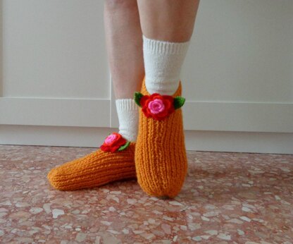 Easy and quick to make these slippers knitting shoes will keep your feet warm and cozy all the time, great to make for holidays gifts for your loves ones. Fun to knit and beautiful to wear! Pattern include two versions, one with beads and other with crochet flower and leafs, you will find step by step instructions of both designs.