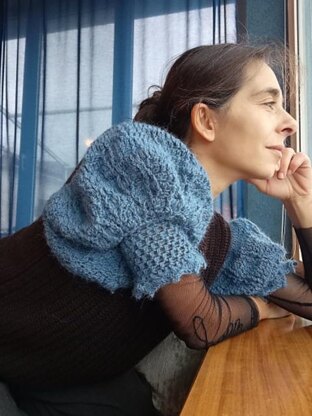 With this pattern you can make a romantic sweater with a cozy fit. It is a very versatile project, which can be used with or without a high collar and with short or long sleeves and is also REVERSIBLE.