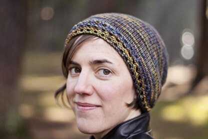 Similarly, this relatively simple slouchy hat (and its matching mitts and shawl patterns) mix standard ideas—mostly stockinette stitch, with a little eyelet trimwork—to create a new set of knit ideas.