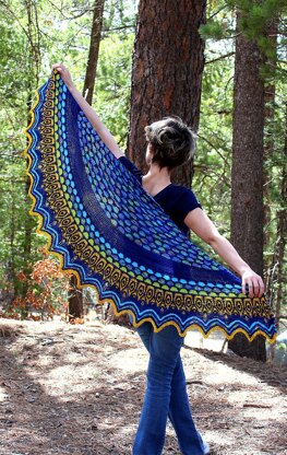 Luthien is semi-circular nonstranded colorwork shawl that mostly uses slipped stitches. Other patterns with the same slipped stitches technique: Peacock Challenge, Feathered Up, and Beren.