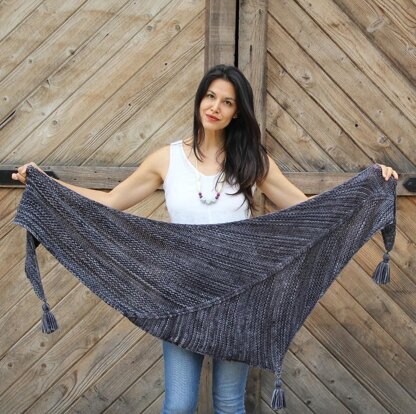 This is knit sideways. The shawl uses 400 yards for the shawl, so if you would like to add the tassels you will need 50 yards more.
