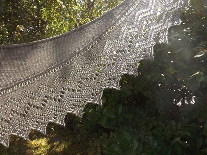 Lysen is a crescent shaped shawl of scarf that will drape gracefully around the shoulders.