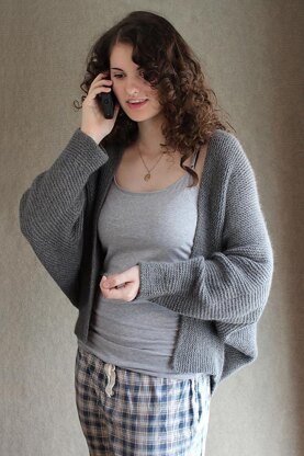 Cozy and elegant garter-stitch cocoon with dolman (batwing) sleeves and wrap-around collar that forms a yoke in back. Easy and fun - a nice first-sweater project.