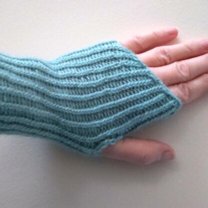 Asymmetric gloves, longest edge at thumb,. Pattern worked in the round.