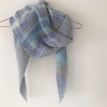 The Madison Shawl is a triangular scarf designed using 200g of dk yarn. The crossed trebles add texture to create a pretty and wearable accessory. It’s a great way to show off a variegated yarn, pair with a contrasting solid colour for a contemporary look. You could use any dk weight yarn that works to the same tension and yardage. It would also look great in cotton or 4 ply yarn as a lightweight cover up for the warmer months.