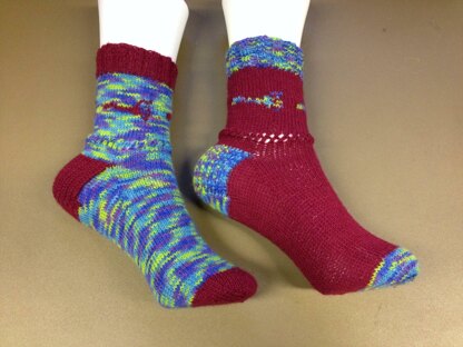This is a knitting pattern for an ankle length sock. It is knitted in the round with 4ply yarn. The length of the foot can be altered to fit.
