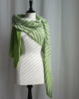 mai troppo is the bigger, faster-moving sister of lace-weight non troppo. mai troppo features the same easy-to-knit alternating stripes in stocking stitch and reverse stocking stitch and a pleasing asymmetry for funky elegance. The cast on is a little different, and the striping sequence toward the end is, too. You are invited to make up your own stripes and throw in a remnant contrasting stripe here or there as you wish.