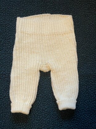 This cute pant is work from the top to the bottom with ribbon stitches and false brioche. The sizes are normal baby sizes.