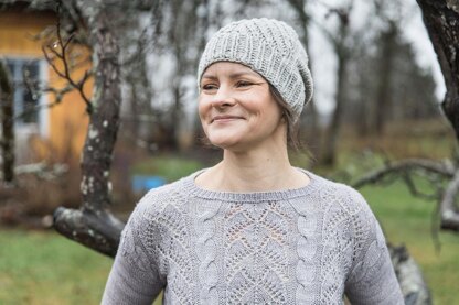 The Maja Hat features a unisex style with a twisted stitch pattern that is worked without a cable needle and becomes easier to knit round by round. The stitch pattern is the same as in the Maja Jacket, so the hat is a perfect way to try out and learn the stitches. The Maja Hat has three written sizes so it can be knitted for the whole family.
