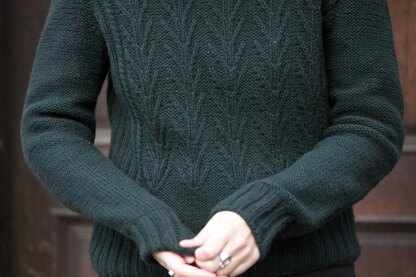 This traditional crewneck pullover is the knitterly additional your wardrobe needs. The centered tree-motif is comprised of twisted stitches and flanked by twisted braids.