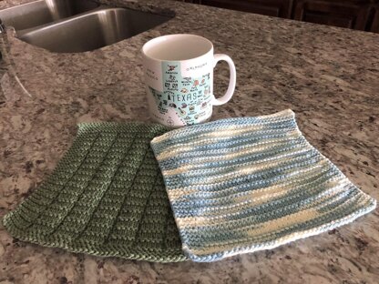 Great for the Novice Knitter who is ready to expand their skills. Manageable Morton I and II are named for a tiny town in far West Texas. There are two designs. The designs are very simple; created by using only knit and purl stitches. Both are knitted flat. These instructions produce a tighter, more wearable fabric. Both cloths have written instructions. Use a 100% cotton worsted for the best cloths. These are great "mindless" patterns to knit while watching TV, etc.