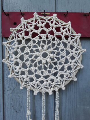 Skill level is beginner/intermediate. Must know basic stitches. Mandala’s are fun to make. They hone your skills for working in the round, multi stitches and a great way to use up leftover yarn. Mandala’s are versatile. Dream catchers, trivets, embellishments, wall hangings and blankets are just a few ideas. Any weight and fiber yarn can be used. For the cream mandala I used a DK weight in cotton with a G6/4m hook. Finished size is approximately 10 inches in diameter. The multi color one is made with fingering weight of different fiber yarns. I used a E4/3.5m hook. Finished size is approximately 8 inches in diameter.