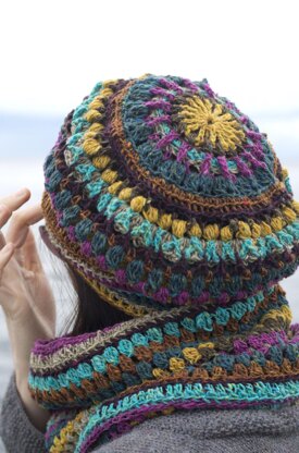 With a slouchy hat style and a puff stitch cowl, these two pieces are a great combo or work well on their own. They are designed in one size and loosely fit 20” around the head, and about 22” in width around the neck.