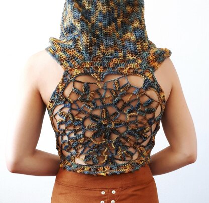 This mandala top was a request from my customer, that wanted a mandala in the bakc with a a hood. It is so fun to make a hooded top, the hood itself is very easy. I think this top is great on its own or over a long-sleeved shirt <3