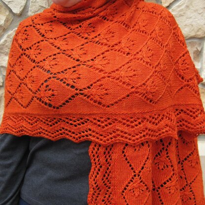 Any heavy fingering weight yarn that yields 4.25 sts/inch on size (U.S.) #6/4.00mm needles in lace stitch will work for this shawl.