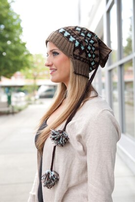 Mandola is worked from the bottom up. The lower ribbed band is knit flat and then joined together as we move through the colowork and then upper ribbing. To finish of the design an i-cord lace is worked and threaded through eyelets. This cord is used to draw the top together for use as a hat. Simply loosen the cord and pull Mandola down to wear as a cowl. Buttons on the lower ribbing can be opened when using as a cowl to allow for more movement across the shoulders.