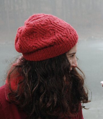 This is the first in my Mixed Drink Series, where two designers work with the same element and see what happens! This pattern includes instructions for both Manhattans. Manhattan plays with slouchy lace hat designs, both knit from the same light fingering yarn. However, the motif, the shape and the feel of each hat is a bit different from the other. Mine is rounder, detailed at the crown, and uses a classic rib and open motif. The hat from my guest designer, Amy, has deeper ribbing, a taller shape and uses an unusual cable cross and lace combination. Plus I went for deep red and Amy for Spicy Brown! Yardage is high, as yarn is held doubled. If you wanted to sub a DK yarn, you could easily knit with half the quantity. But make sure you check your gauge. Mine is pictured in Foxfire Cormo Alpaca Lace in Amaryllis and Amy's is in Foxfire Cormo Camel Silk in Bittersweet. Alternative yarns are suggested, amounts given are for one hat.