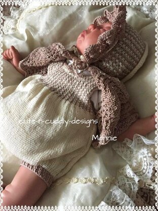 If knit in 4-ply the set will fit a 20-22" reborn/doll or prem baby 0-3 month. If knit in DK it will fit a 23-25 inch reborn/doll or baby 3-6 month