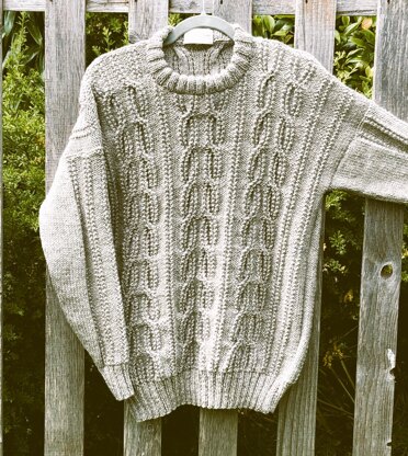 A super textured sweater with timeless appeal. It looks tricky but is amazingly simple with cables occurring on every 16th row up the front and back, so perfect if you're new to cabling. 2/2 rib frames the design and the neat crew neck is double over for a cosy fit. Easily suitable for men or women. Worked bottom up and with full written instructions.