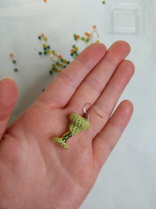 My favorite adult beverage is an icy, frozen margarita! You'll love these margarita earrings, perfect for summer fun or a night out! You'll need some lime green crochet thread and a 1.5 mm hook to whip these up, as well as size 6/0 beads and fish hook earring findings. Experiment with different colors for other margarita "flavors"!