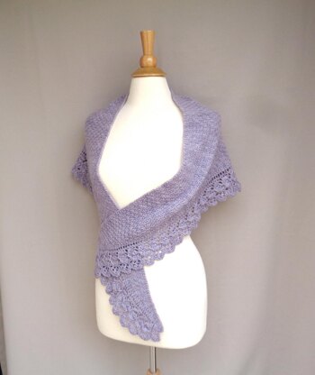 An elegant scallop lace edging adorns this elongated shawl with a shallow, textured body, worked in a hand-dyed yarn for a gorgeous, subtle color variation. The DK weight silk blend yarn adds a nice drape and sheen and a comfortable, mid-weight thickness.