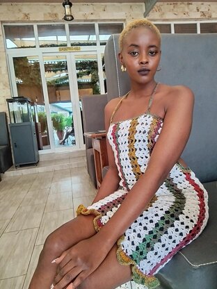 This dress is crocheted sideways, and the top and skirt are crocheted separately then joined.