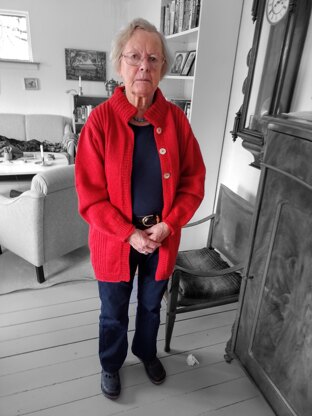 MARIE - a beautiful long sleeved cardigan in DK-weight wool. Very good to slacks or a skirt. Worked flat from right front opening across the back to left front opening. The pattern consists of columns in stocking st and pattern made from chart. The sleeves to operate top down - or make them separately to sew in. It is recommended to use circular needles as there is quite a large number of stitches. Required skill level from 1 (basic) to 5 (advanced): 3↑.Sizes: small - medium - large - xlarge - xxlarge. The measurements given throughout the pattern are all in cm as well as inches.