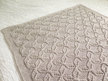 I found the pattern for this blanket in one of my grandmother's German stitch libraries. I adapted it a little, to create this lovely cable lace blanket pattern. I call it Mariele's Cable Lace Blanket, in honor of my grandmother, who was an amazing crafty lady. The pattern comes in three different sizes: Stroller: approx. 30 " x 35" or 76 cm x 89 cm Receiving: approx. 40" x 40" or 102 cm x 102 cm Crib: approx. 45" x 60 " or 114 cm x 152 cm It is made with Aran weight yarn, also known as Worsted, Afghan or 10 ply, and will knit up quite quickly.