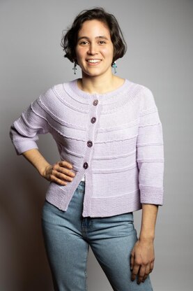 The Mariposa cardigan is totally beginner friendly and a cute cardigan wearable all seasons depending on the warmth of the yarn you choose. The construction is simple and seamless. You cast on stitches at the collar and knit top down. The neck shaping is worked with German Short Rows. The Body is worked flat in rows and the sleeves in the rounds. Mariposa is a playful design in A-shape with elements in garter stitch worked flat and in the round.
